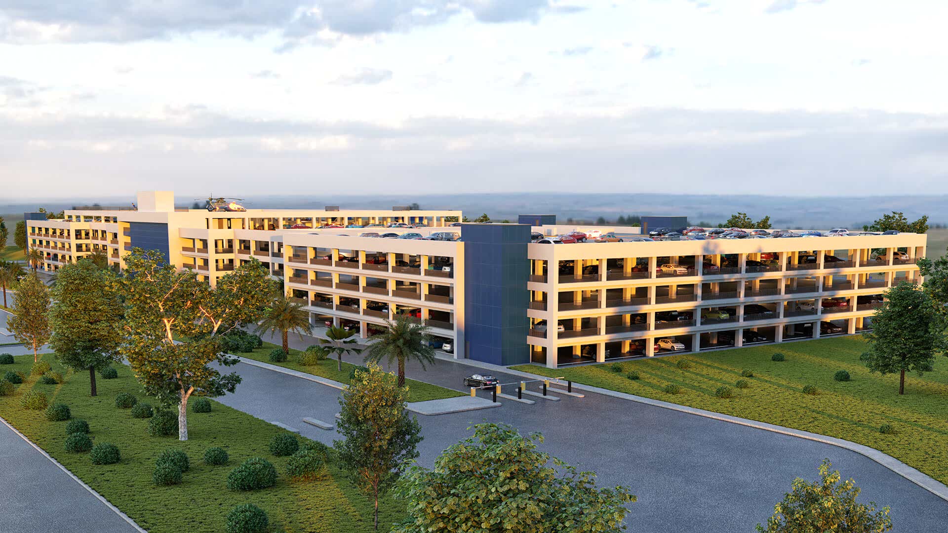 71464 m² kapalı bir otopark alanı inşa edilmektedir. Otopark üzerinde bir heliport ve ayrıca 4 helikopterlik park alanı da bulunacak.